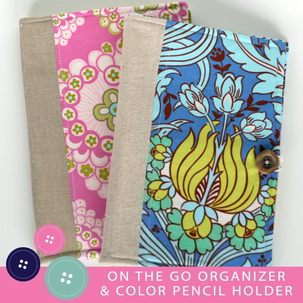 New! As a bonus, included in this pattern are instructions to make a colored pencil carrier and another style front of the On the Go Organizer. So easy and fun- all from the same pattern!